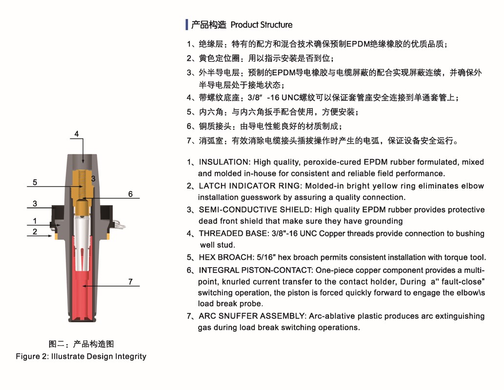 The Bushing Insert are molded using high quality sulfur-sured insulation and semi-conduction EPDM rubber. When mated with a comparably rated component, the bushing insert provides a fully shielded and submersible connection for load break operation.